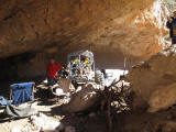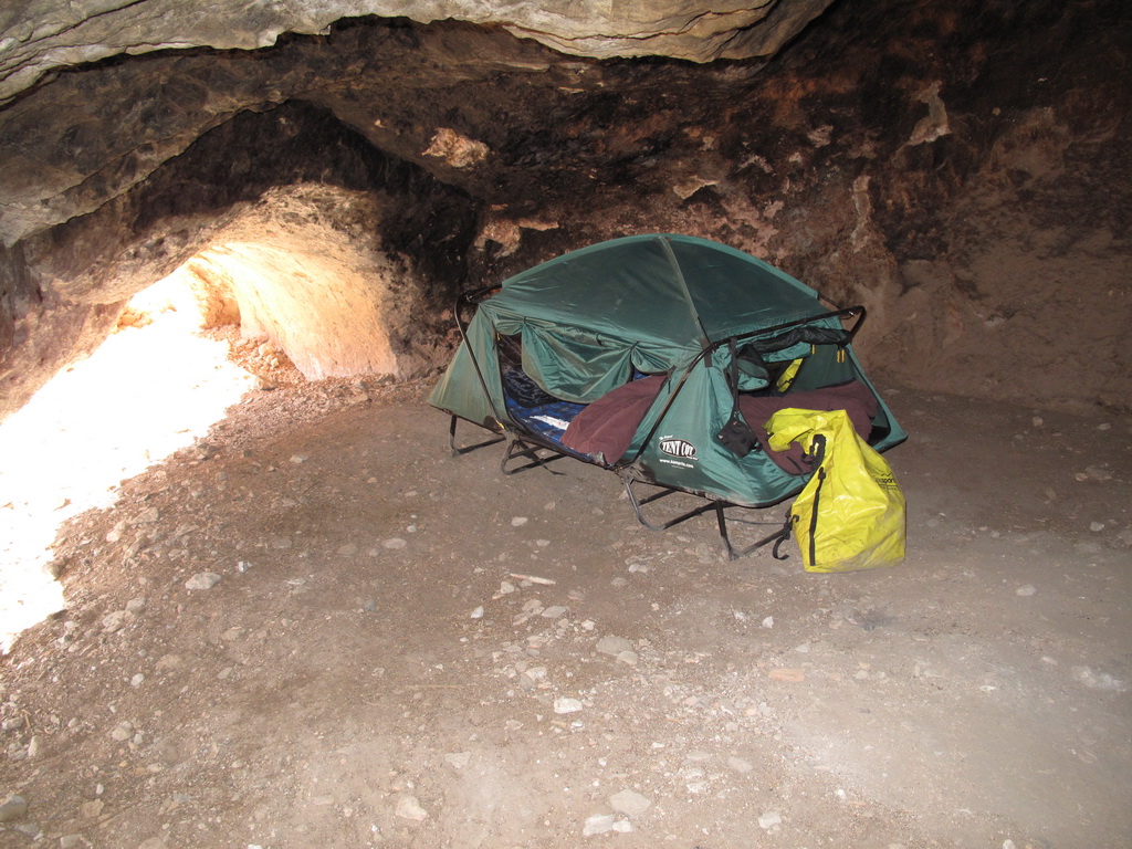 Since they are going to be closing down the Martinez Cabin trail, a few of the Loco guys had a final campout in a cave just past the cabin near the mill. Here are some pictures of the campsite.