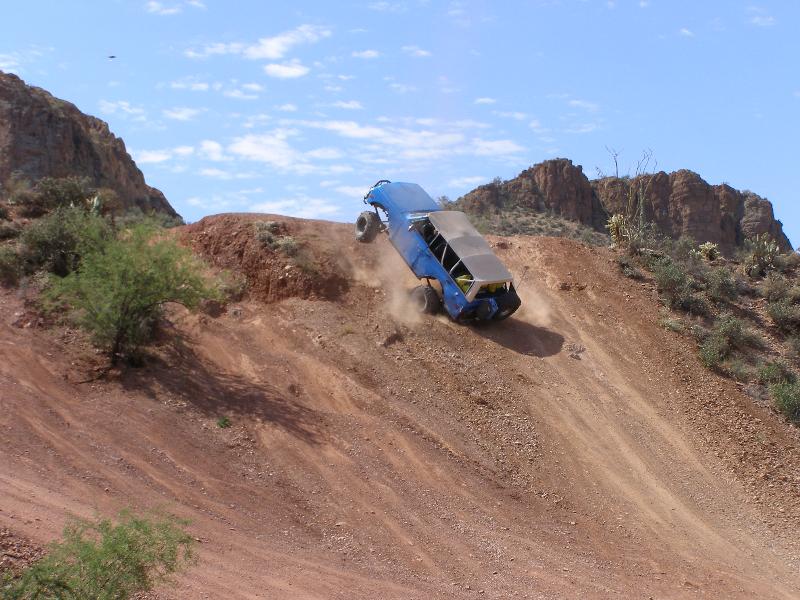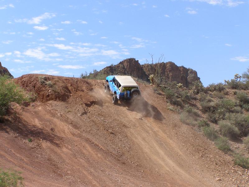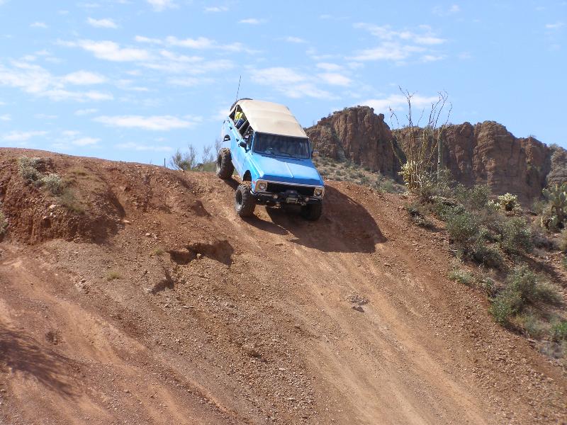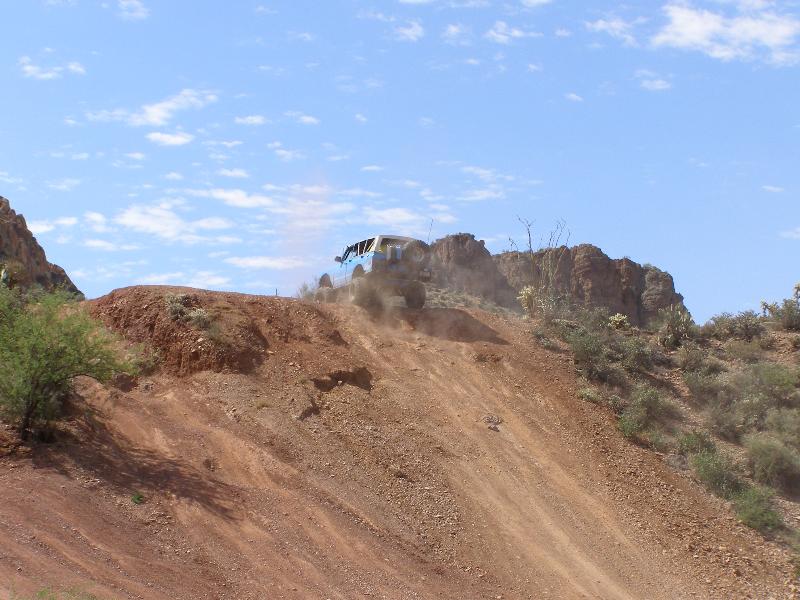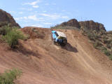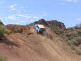 Shortly after we got out of Box Canyon our group got split up.  We never did find the other group but we did hear that they made it out safely.  While we were waiting for them to catch up I played around on a big hill and almost flipped my truck.  Justin didn't think he got a picture of it, but apparently he did.  I ended up standing the truck pretty much straight up in the air.  It was resting on the spare tire and bumper, that's all the kept me from going over.  Once the truck stopped moving I put it in reverse and gunned it to get back on all 4 wheels and down the hill.