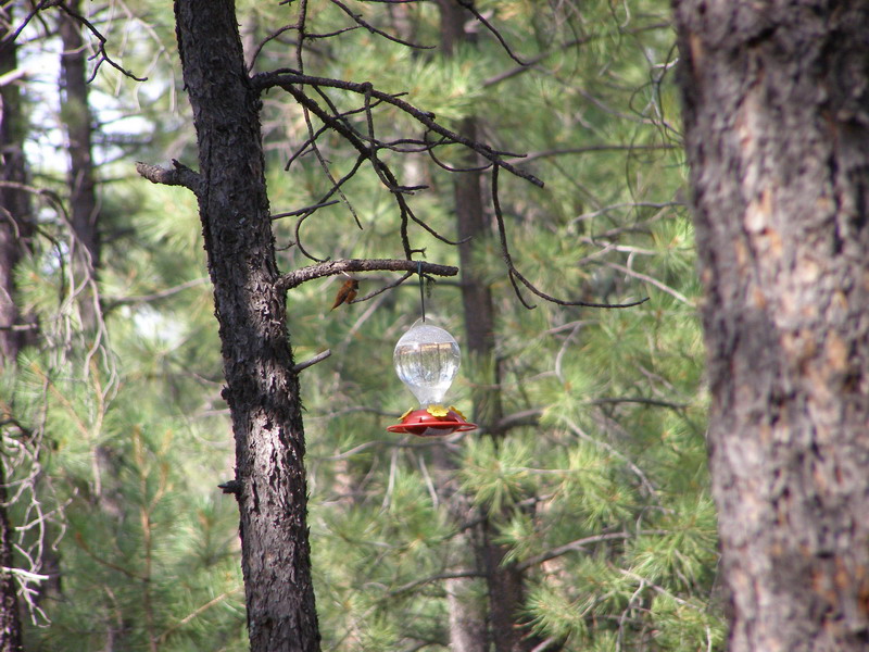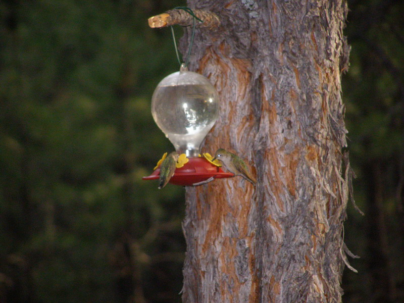 The area is populated by many hummingbirds that are accustomed to being fed by campers and people living in the area.  They kept trying to drink from anything and everything in the campsite, including our heads...  We ended up buying 3 different feeders and hanging them around the campsite.
