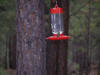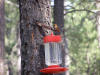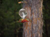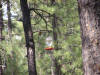 Individual birds would fight for dominance over each feeder.  By the end of the camping trip we had 1 bird at each feeder that would attempt to run off any other birds that would visit.  It made for some interesting chases through the tree's by up to 6 birds at once.  Somehow reddish colored hummingbirds ended up being dominant at each of the 3 feeders.  Here are pictures of two of them guarding their feeders.  When the birds would fight you could actually hear them hit their wings on the invading bird to chase it away.
