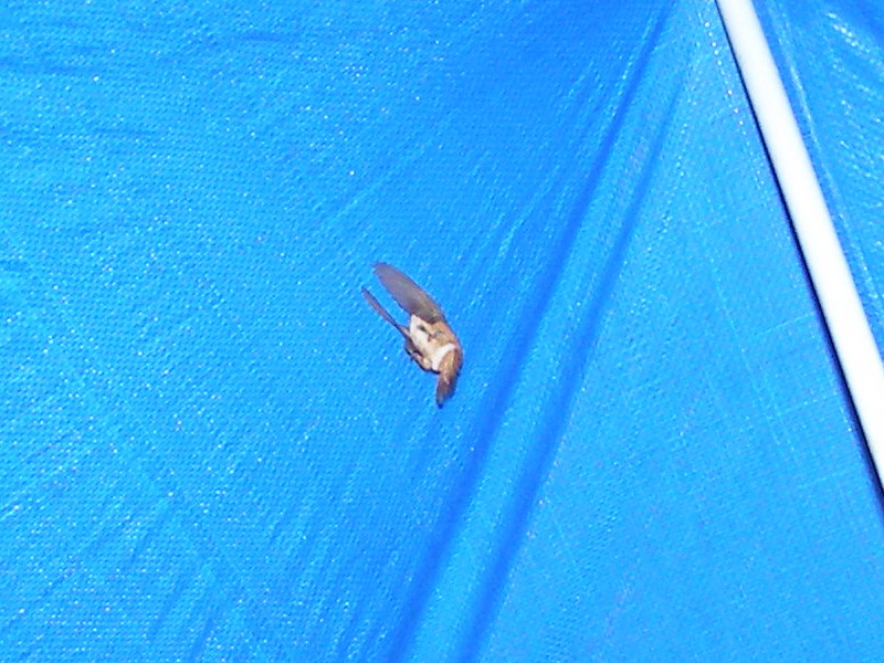 One bird managed to fly under our canopy and get stuck.  It kept trying to fly up and away into the blue (maybe it thought it was the sky??).  We snapped a flash picture and captured it's wings mid-flap before I helped it find its way out.