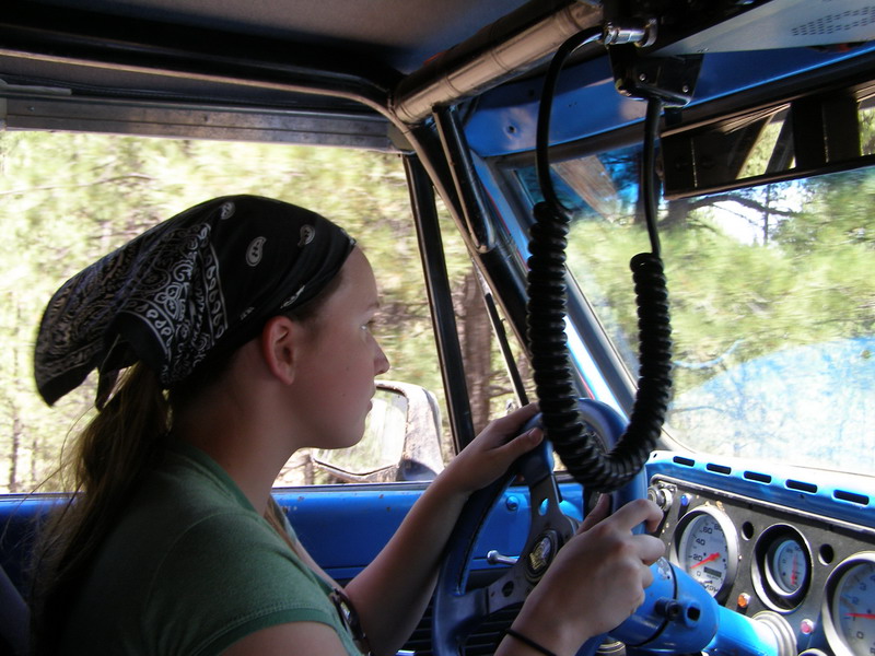 Here is a shot of 'Cede shortly before she crashed the truck into a tree.  I think the tree took more damage than the truck.